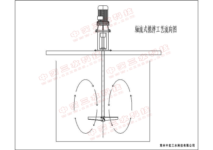 在孫先生的攪拌工藝需求中,需要的是能上、下流動的攪拌工藝,使生物流體充分攪拌混合,其實對于中低粘度的液體攪拌而言,軸流攪拌的推進式攪拌機是最科學、最適合的攪拌形式(如圖),還非常節(jié)能,另外,我們運用計算軟件計算攪拌流量和功率配置,結(jié)合我們的行業(yè)經(jīng)驗,配置的技術參數(shù)也能實現(xiàn)恰到好處的工藝效果。而框式攪拌器帶動物料做的是環(huán)向流動,上下流動效果很弱。