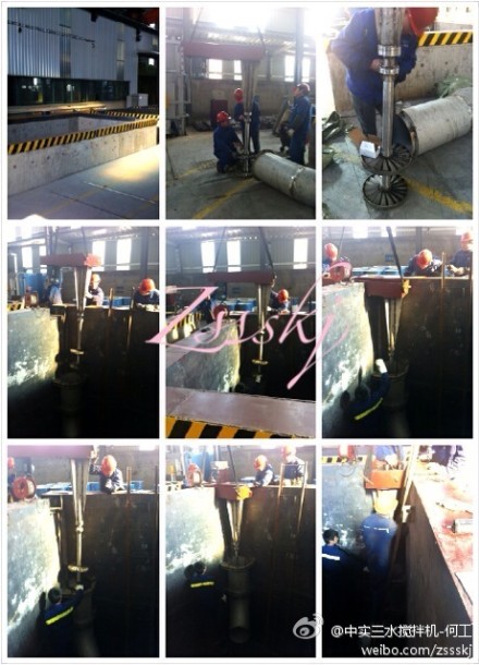 雖然農(nóng)歷年臨近,但應(yīng)客戶需求,今天我們赴浙江客戶處指導(dǎo)淬火池?zé)崽幚砝鋮s攪拌機(jī)的現(xiàn)場安裝指導(dǎo)。 此項(xiàng)目要求“導(dǎo)流管的出水方向可以調(diào)節(jié)”,在導(dǎo)流管里配置液體攪拌機(jī)方面,我們已經(jīng)擁有多項(xiàng)實(shí)用技術(shù)。今年我們又分別在3個(gè)項(xiàng)目里推廣應(yīng)用多層滿葉型軸流推進(jìn)槳,均獲得了很好的工藝效果,同時(shí)在這個(gè)項(xiàng)目過程中我們還解決了一項(xiàng)避免焊接變形的工藝難點(diǎn),下面是施工現(xiàn)場的組圖片: